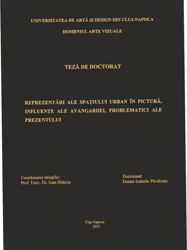 Teza de doctorat, intitulată „Reprezentări ale spațiului urban în pictură. Influențe ale avangardei, problematici ale prezentului”, abordează într-o manieră riguroasă și personală relația dintre oraș, artă și societatea contemporană. Demersul propune o analiză profundă a spațiului urban ca realitate vie, marcată de transformări, tensiuni și suprapuneri de sensuri, filtrate prin limbajul picturii și prin reperele avangardei artistice.
